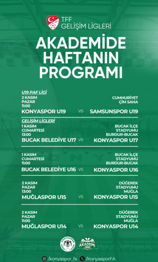 Konyaspor Akademi oyuncularımız Ata Yanık ve Efe Seçil, U17 Milli Takımımızın 11-17 Kasım tarihleri arasında Sırbistan’da oynayacağı 2025/26 UEFA Avrupa U17 Şampiyonası Eleme Turu maçları aday kadrosuna davet edildi. Oyuncularımıza,